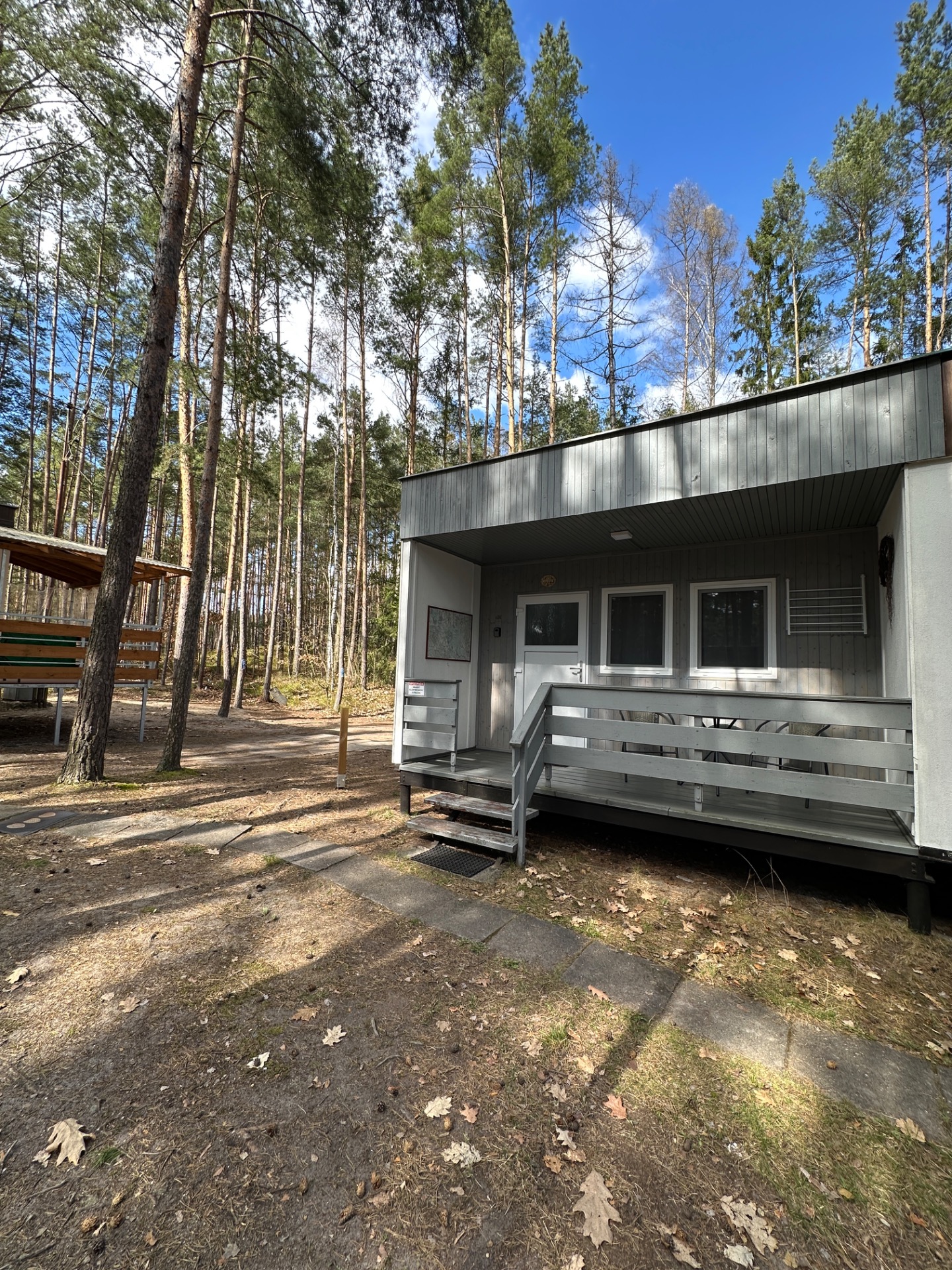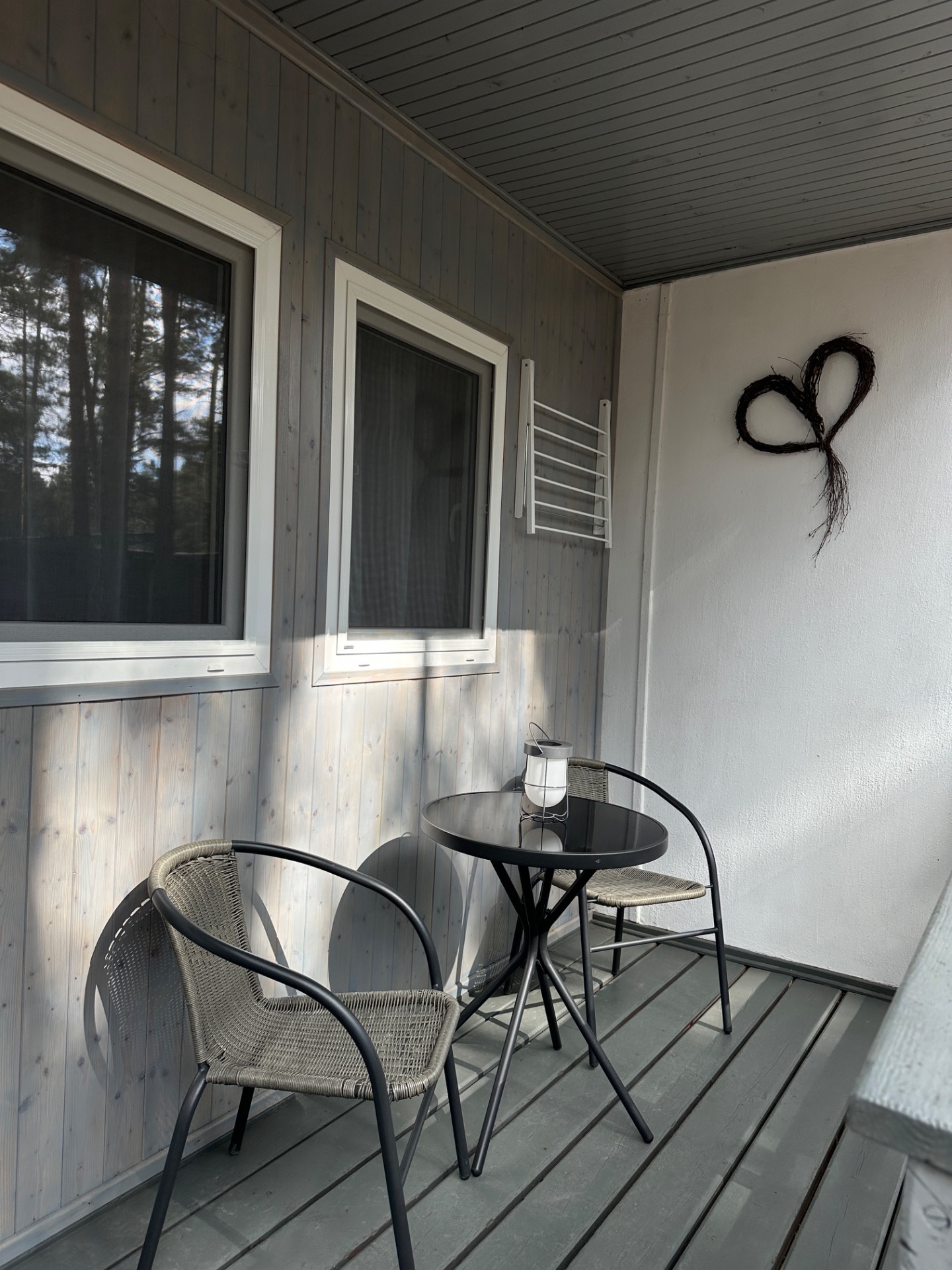 Krytá veranda nabízí příjemné místo pro odpočinek v klidném prostředí borovicového lesa. Je ideální pro ranní kávu, večerní sklenku vína nebo chvíle nerušené pohody na čerstvém vzduchu.